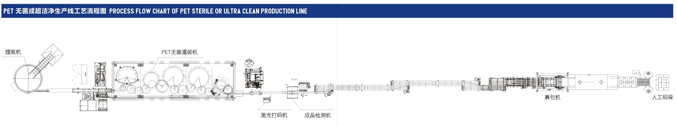HOME - PRODUCTS - STANDAED PRODUCTION LAYOUT DRAWING - PET PROCESS FLOW CHART OF PET STERILE OR ULTRA CLEAN PRODUCTION LINE