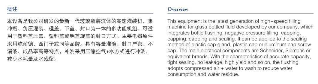 首頁 - 產(chǎn)品展示 - 玻璃瓶沖瓶、灌裝、封口三合一機 - CGZ 玻璃瓶沖瓶、灌裝、封口三合一機